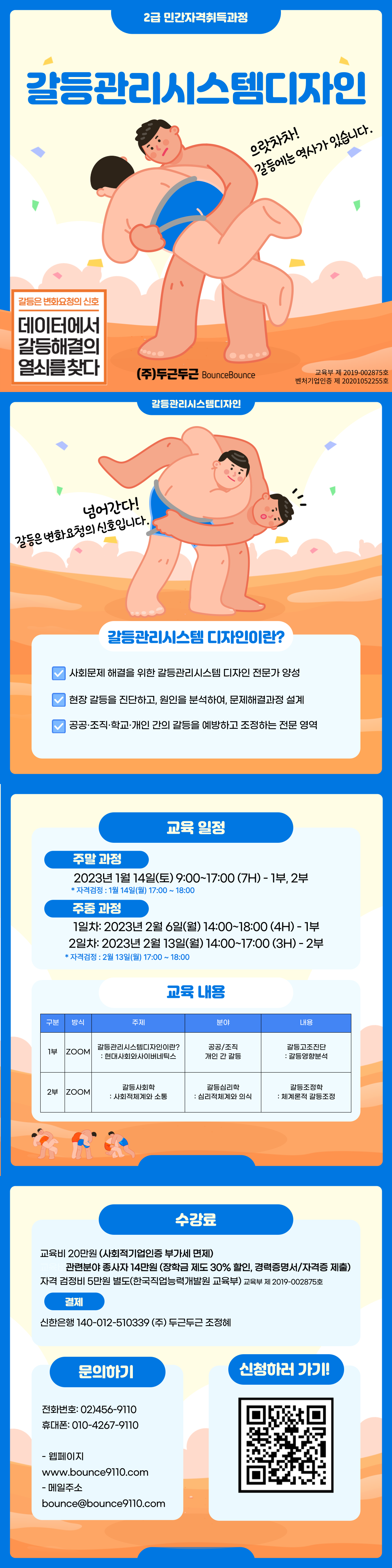 Teacher (주)두근두근 관리자 Categories 자격증 과정 Review (0 review) Overview Overview 2급 자격과정 신청하러가기 관련분야 종사자 2급 자격검정 결재하러가기 관련분야 종사자에 한하여 30% 할인! 검정비 별도 Course Features Lectures 12 Quizzes 0 Skill level 일반인, 전문가 Students 200 Assessments Yes Curriculum Curriculum 교육과정자격증 과정2023년 2차 갈등관리시스템디자인 2급과정 기본정보 확인 1 Lecture1.1 기본정보 Copy Copy Copy 10 min 1강 3 Lecture2.1 1.1 개인간의 갈등해결_에피소드1 Copy Copy Copy Lecture2.2 1.2 개인간의 갈등해결_에피소드2 Copy Copy Copy Lecture2.3 1.3 조직도, 관계도 그려보기 Copy Copy Copy 2강 3 Lecture3.1 2.1 개인간의 갈등해결_갈등해소 대화 Copy Copy Copy Lecture3.2 2.2 개인간의 갈등해결_에피소드 Copy Copy Copy Lecture3.3 2.3 개인간의 갈등해결_갈등해소 대화 추가 사항 Copy Copy Copy 3강 3 Lecture4.1 3.1 개인간의 갈등해결_전통적 조정 Copy Copy Copy Lecture4.2 3.2 개인간의 갈등해결_에피소드 4 Copy Copy Copy Lecture4.3 3.3 개인간의 갈등해결_전통적 조정 추가 사항 Copy Copy Copy 4강 2 Lecture5.1 4.1 개인간의 갈등해결_적용 기법 Copy Copy Copy Lecture5.2 4.2 개인간의 갈등해결_갈등분석 종합 Check List Copy Copy Copy Instructor Instructor (주)두근두근 관리자 Reviews Reviews Reviews Average Rating 0 0 rating Detailed Rating 5 0% 4 0% 3 0% 2 0% 1 0% Overview Curriculum Instructor Reviews ₩200,000 Add to cart You May Like You May Like Read More (주)두근두근 관리자 [2급] 2025년 9월 갈등관리시스템디자인전문가 2급 취득과정 Students 1 0 ₩300,000 Read More (주)두근두근 관리자 [1급] 2025년 6월 갈등관리시스템디자인전문가 1급 취득과정 Students 1 0 ₩1,000,000 Read More (주)두근두근 관리자 ★★2025년 5월 갈등관리시스템디자인전문가 2급★★ Students 4 0 ₩300,000 Read More (주)두근두근 관리자 [2급] 2024년 11월 갈등관리시스템디자인전문가 민간자격취득과정 Students 0 0 ₩300,000 Read More (주)두근두근 관리자 ★2급 갈등관리 Tool - Box 워크북 (2024) Students 235 0 Free ₩200,000 Add to cart Overview Curriculum Instructor Reviews Share: