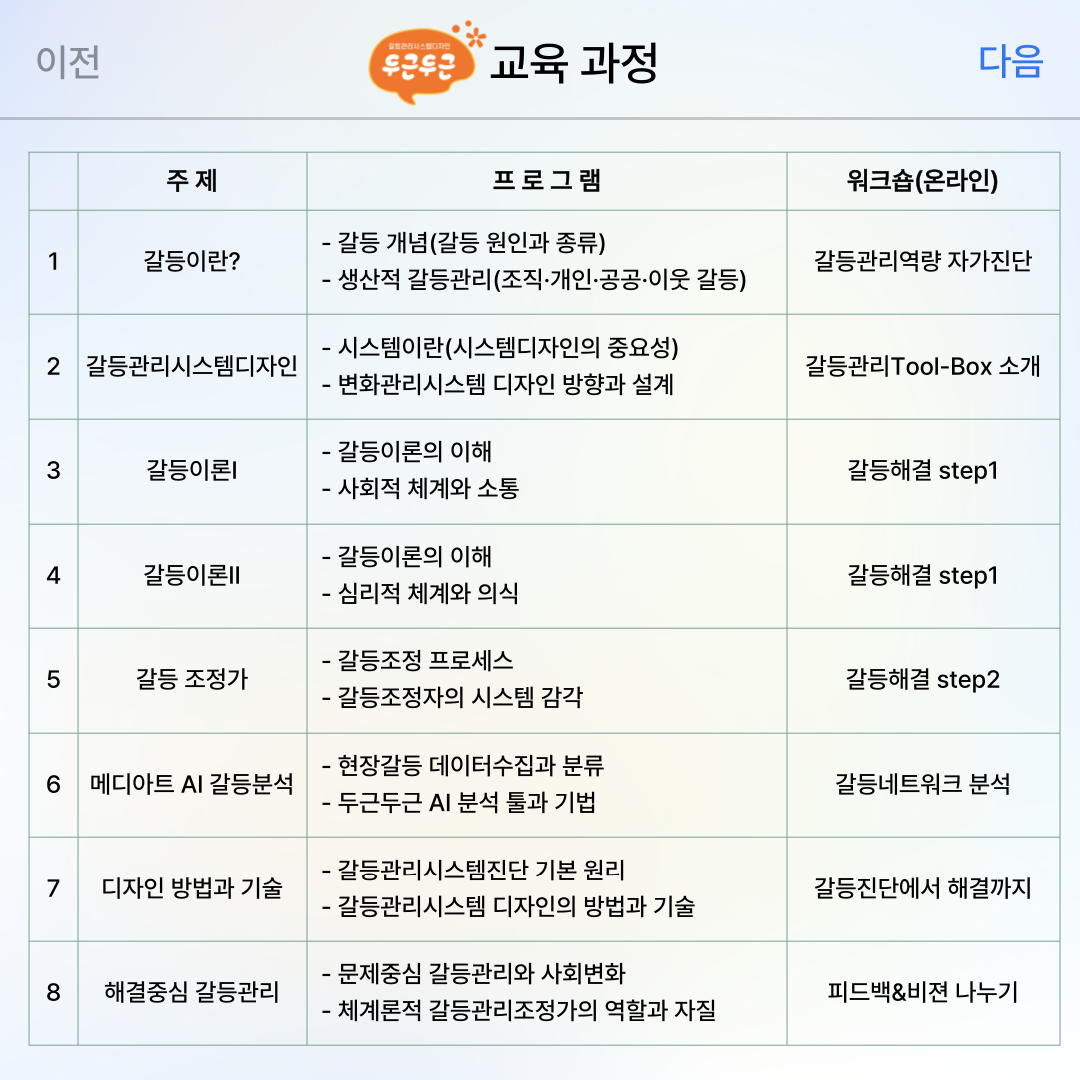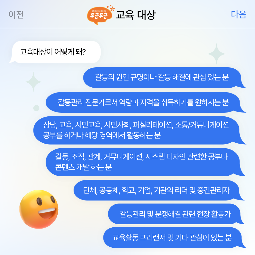- 조정혜(두근두근 대표, 갈등관리시스템디자인 설계자, 갈등관리교육가)
