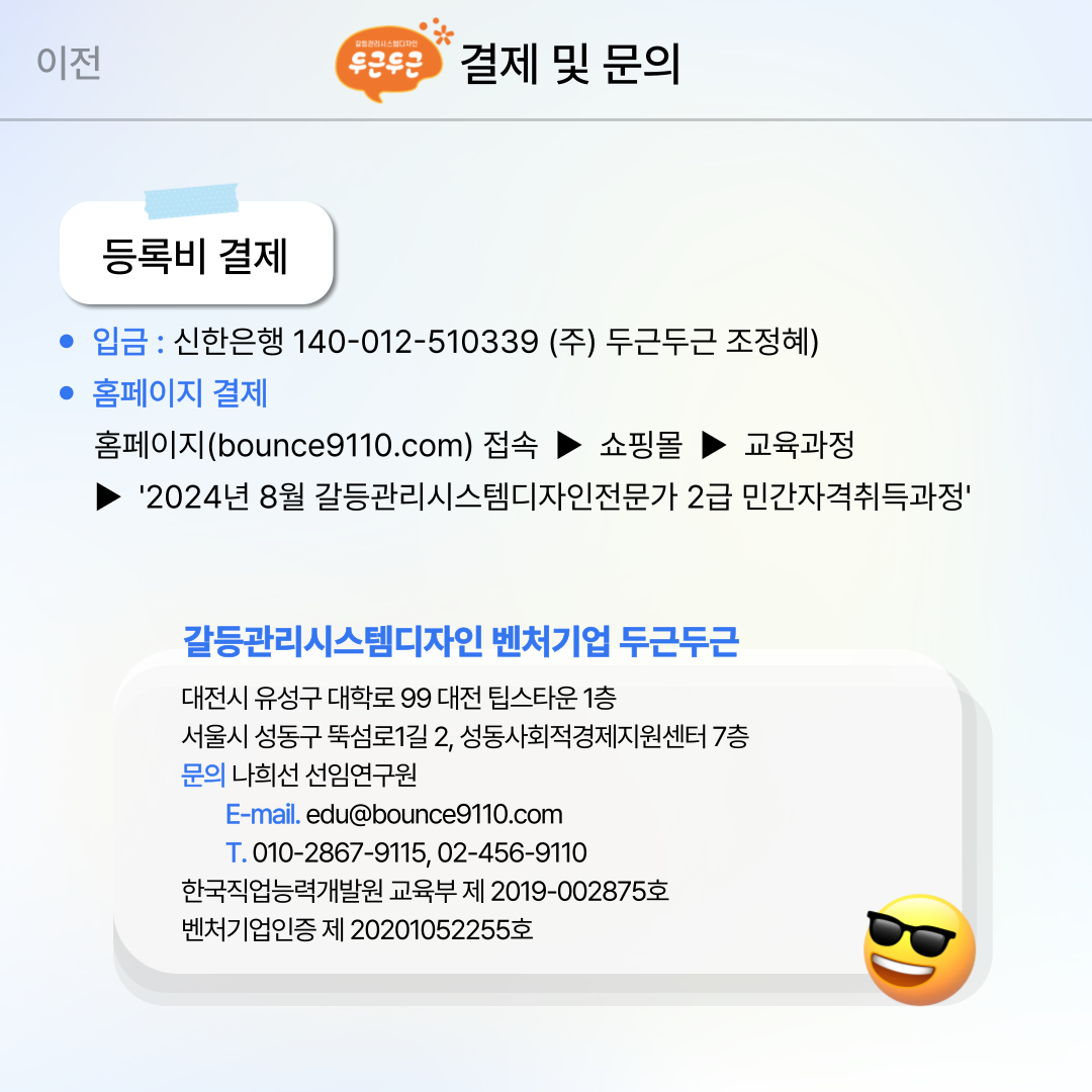 문의 : 02-456-9110, 010-5027-2696 (교육팀 담당자 나희선)