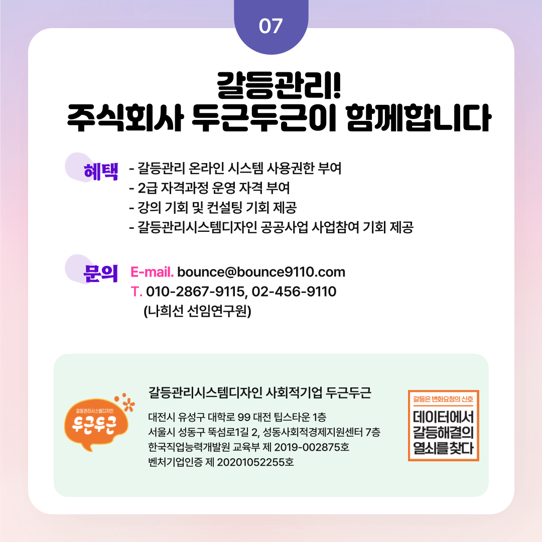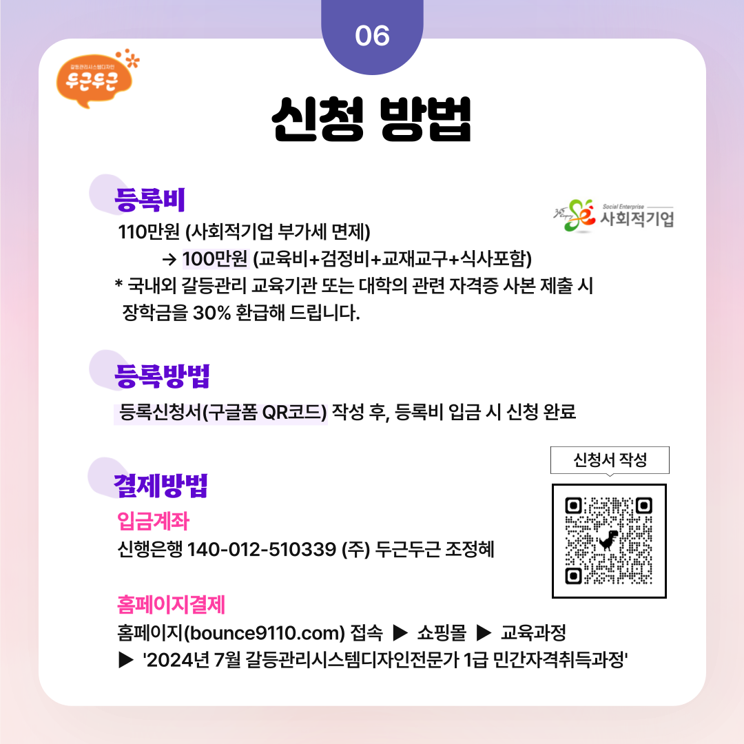 문의 : 02-456-9110, 010-2867-9115 (교육팀 담당자 나희선)