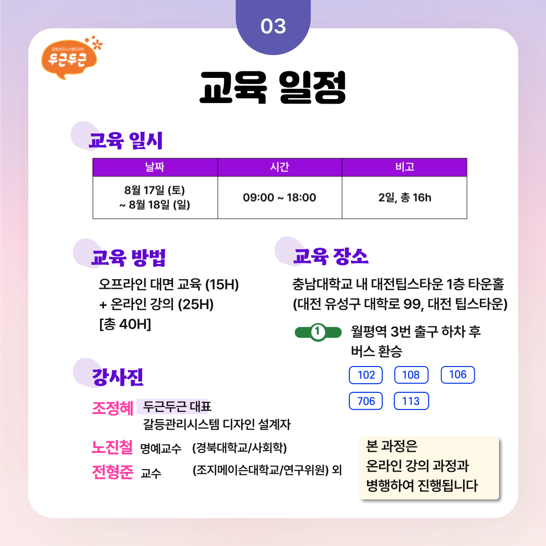 2024년 8월 17일 (토) ~ 8월 18일 (일) 09:00 ~ 18:00 (2일, 총 15H)